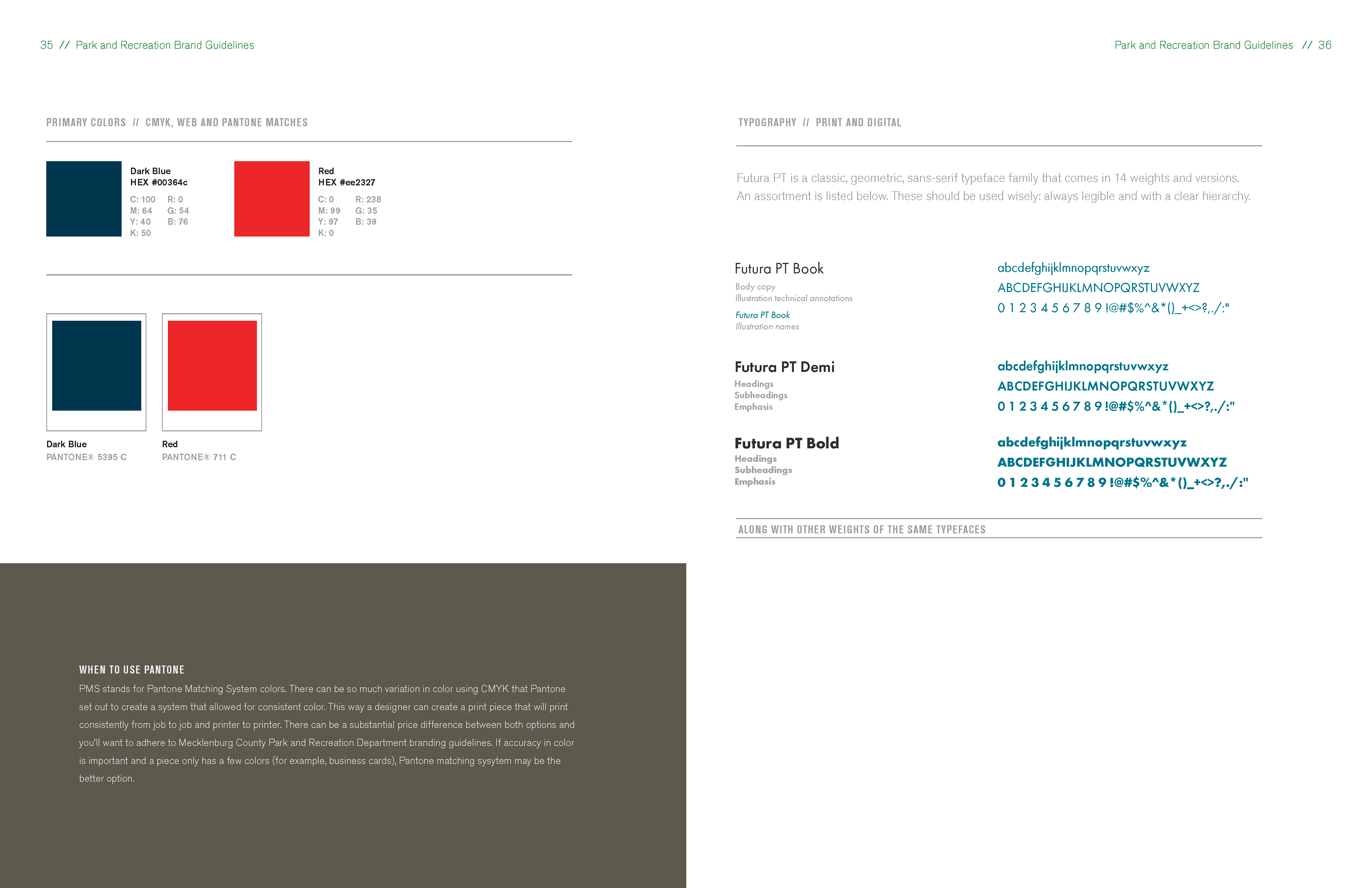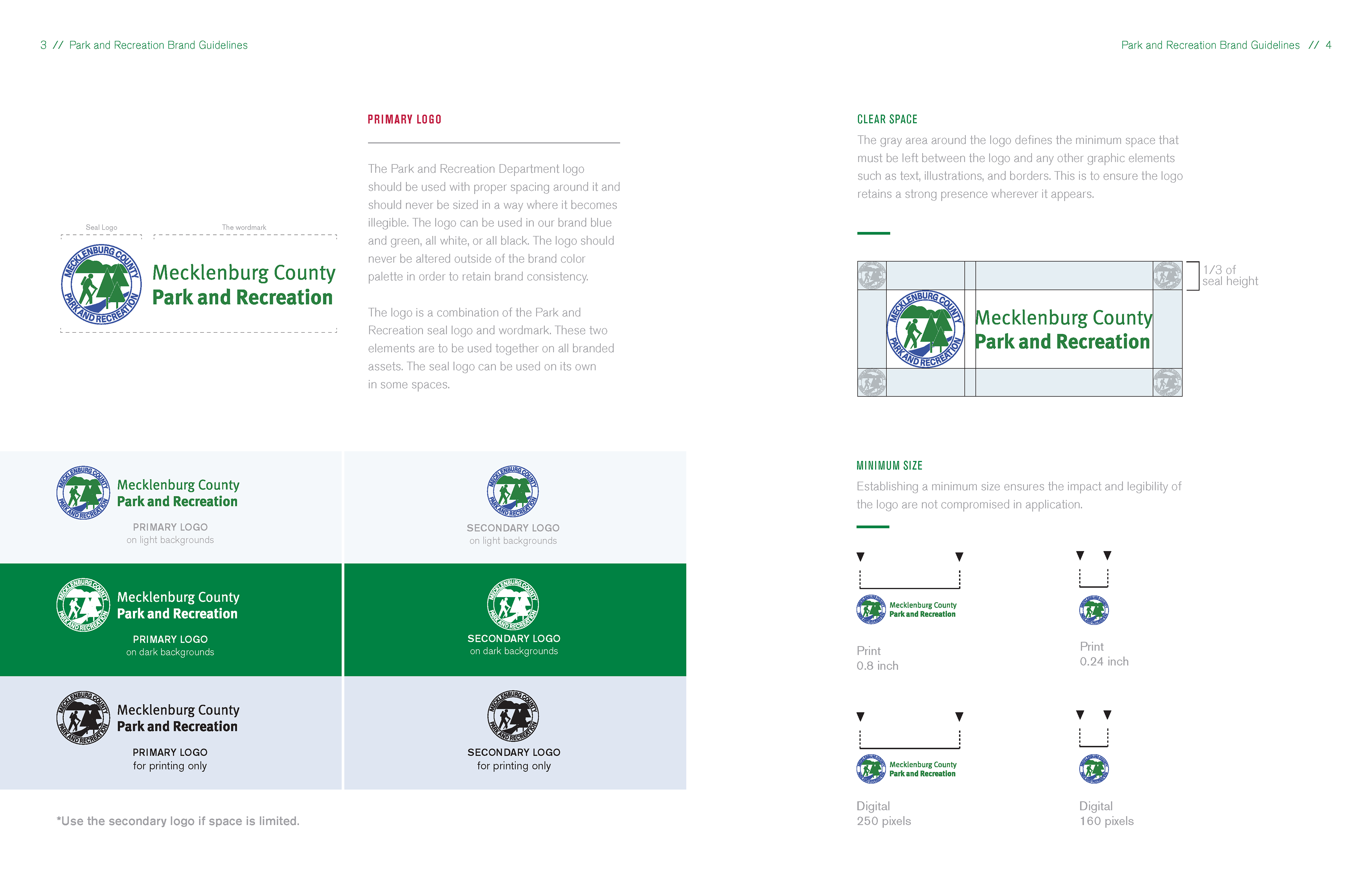 The Mecklenburg County Parks & Recreation brand guidelines establish a clear, welcoming visual system that reflects the department’s role as a steward of public space, wellness, and community connection. Rooted in accessibility and inclusivity, the brand balances civic credibility with warmth—inviting residents of all ages and backgrounds to see themselves in Mecklenburg County’s parks, trails, and programs.