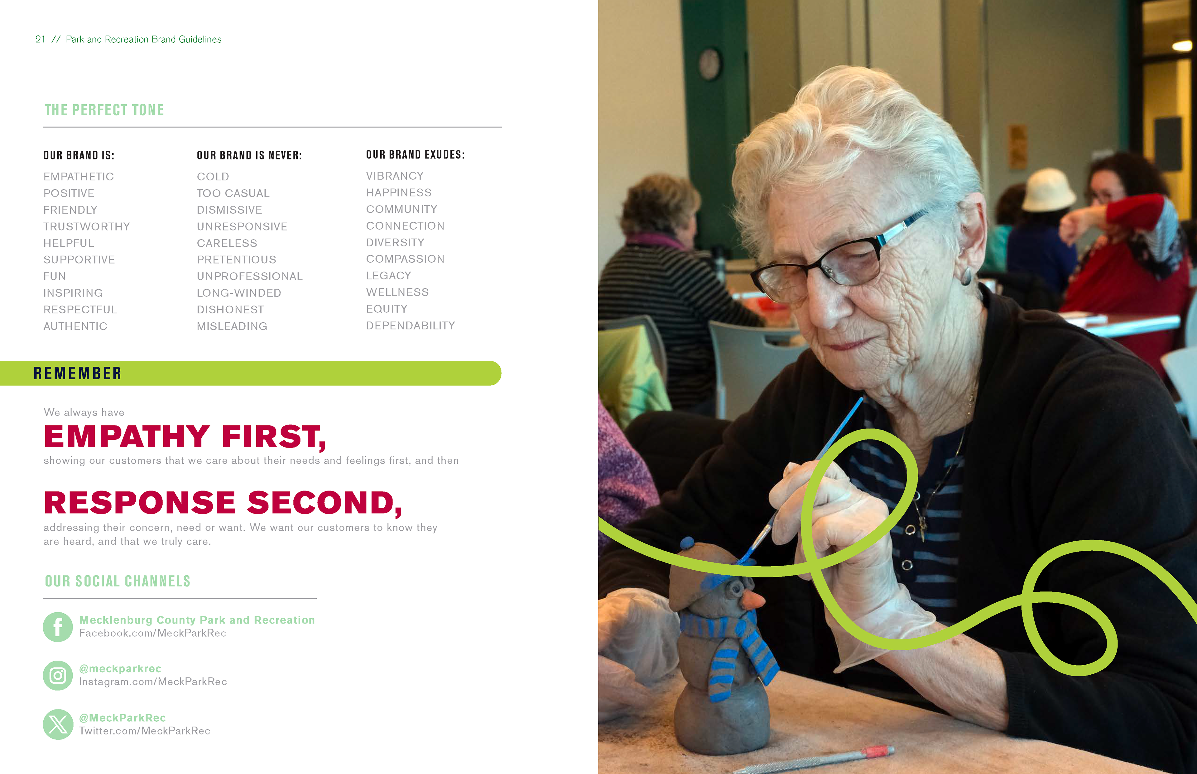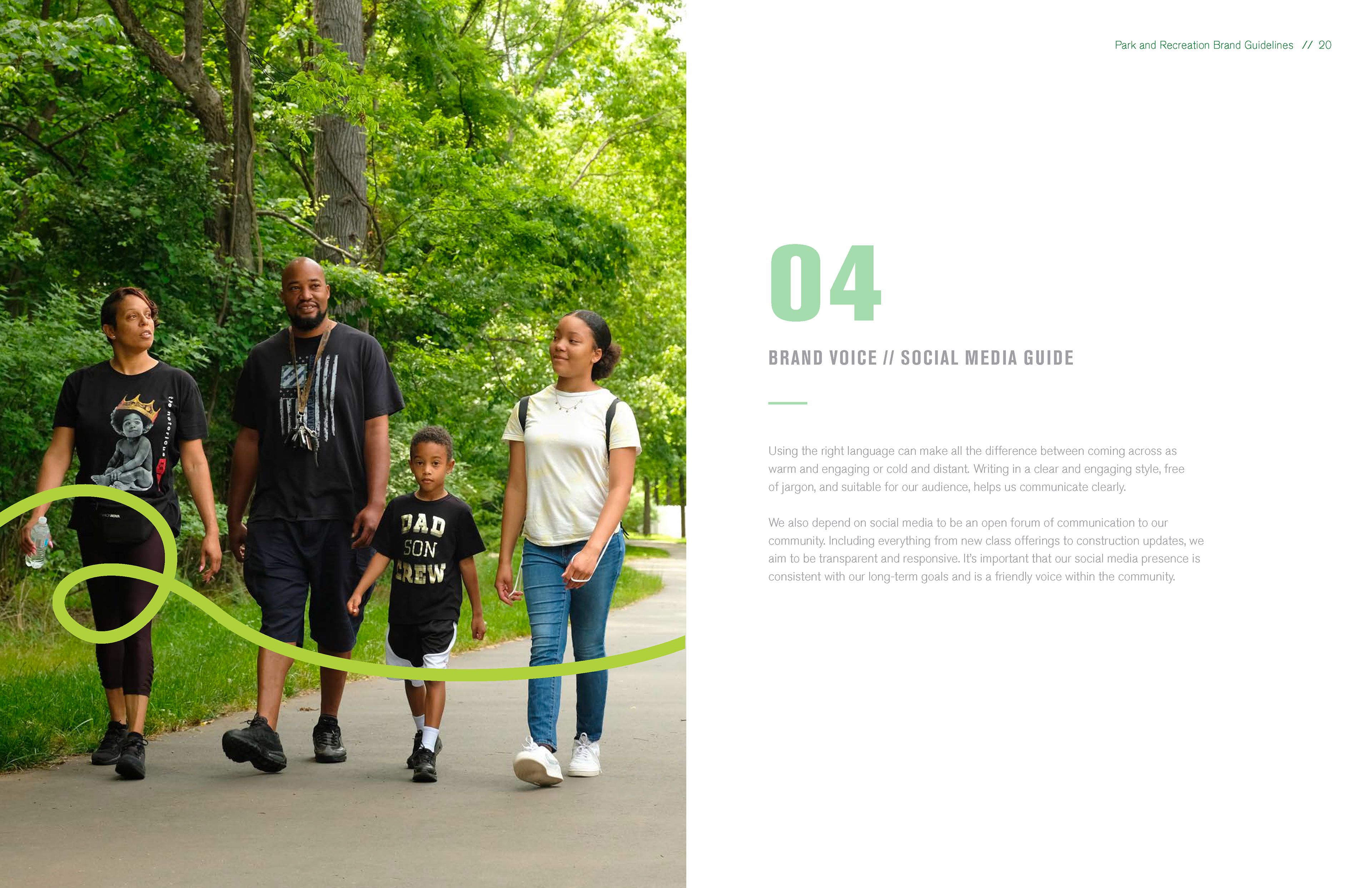 Overall, the guidelines provide a cohesive framework that supports storytelling, reinforces trust in public services, and celebrates parks and recreation as essential infrastructure for health, belonging, and quality of life in Mecklenburg County.